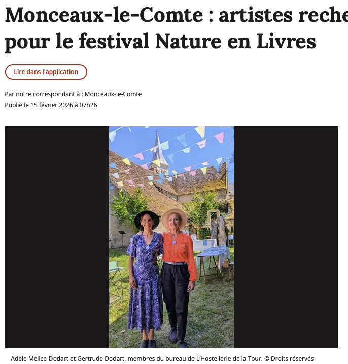 La presse parle de l’Hostellerie de la Tour et du Festival Nature en Livres 2026…